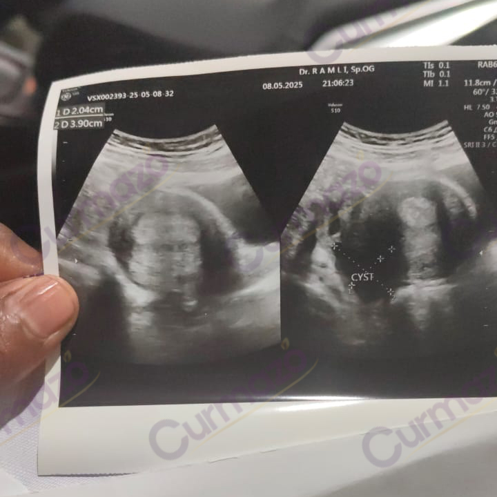 25 Agustus 2025, setelah pulang kerja badan saya rasanya capek sekali dan perut bagian bawah terasa nyeri, akhirnya saya pergi cek ke dokter kandungan. Saya kaget sama hasil USG nya. Ternyata saya ada 3 kista yang berukuran 5.59 cm, 4.68 cm, dan 5.23 cm. Disitu saya baru paham, ternyata gejala yang selama ini saya alami itu disebabkan oleh kista.